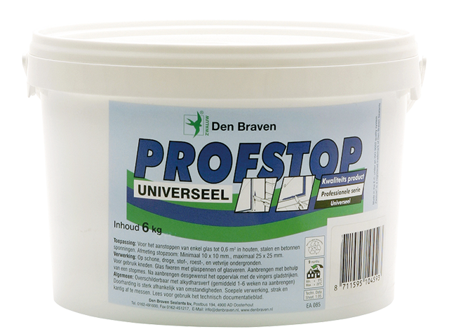 | Applicaties | Zwaluw Profstop Universal is ontwikkeld voor het afdichten en aanstoppen van enkel glas tot 0,6m2 in houten, stalen en betonnen kozijnen. Let op: doorhardingstijd kan oplopen van enkele maanden tot een jaar. Voor toepassing waar snel overschilderd dient te worden raden wij Zwaluw Monustop aan. |
