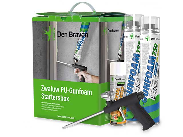 | Applicaties | De Zwaluw PU-Startersbox is een complete set voor het professioneel verwerken van PUR-schuim. Deze set is ideaal voor het vullen, isoleren en afdichten van naden, voegen en holtes in bouwconstructies. Het biedt een efficiënte en gebruiksvriendelijke oplossing voor zowel binnen- als buitentoepassingen. |